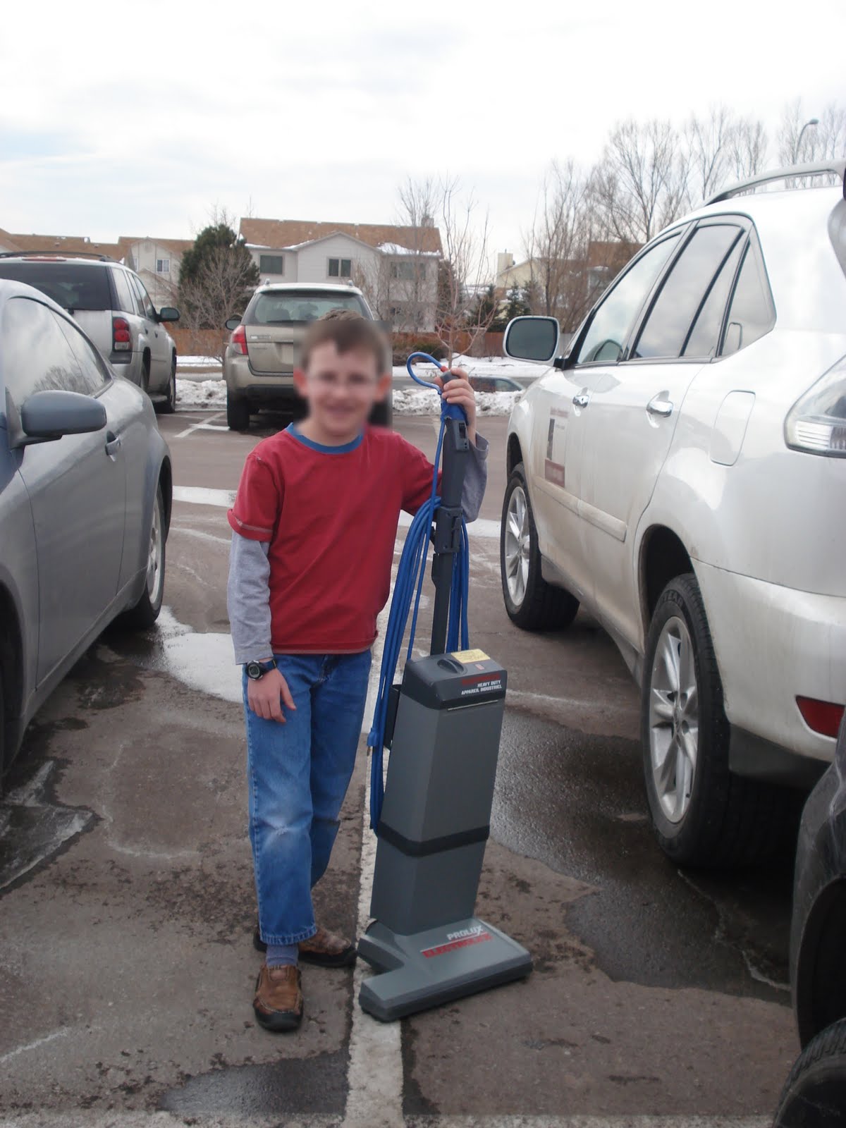 Last winter, I drove our vacuum cleaner that was just about as old as me down to Goodwill to be donated. Here is my little brother standing beside it just before I loaded it into the car.