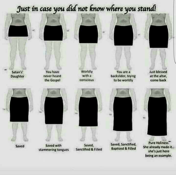 Most of this isn’t even in the Bible. Jesus doesn’t love you more if you wear the right clothing. I believe he lets you make your own adult choices.