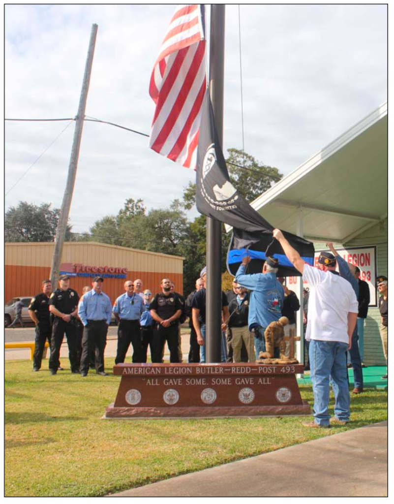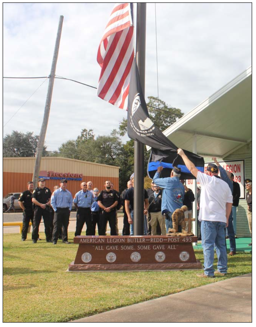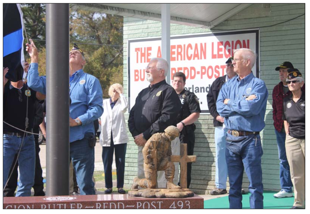American Legion Post 493 in Mid-County added a Back the Blue flag to its flagpole during a flag-raising ceremony on Wednesday, Nov. 30.