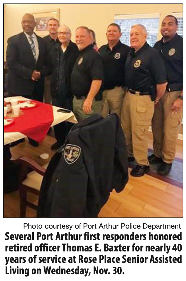 Several Port Arthur first responders honored retired officer Thomas E. Baxter for nearly 40 years of service at Rose Place Senior Assisted Living on Wednesday, Nov. 30.