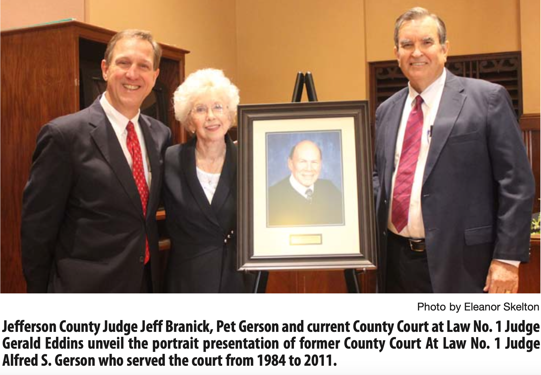 The Honorable Gerald Eddins and Pet Gerson, the late judge’s wife, unveiled the painting.