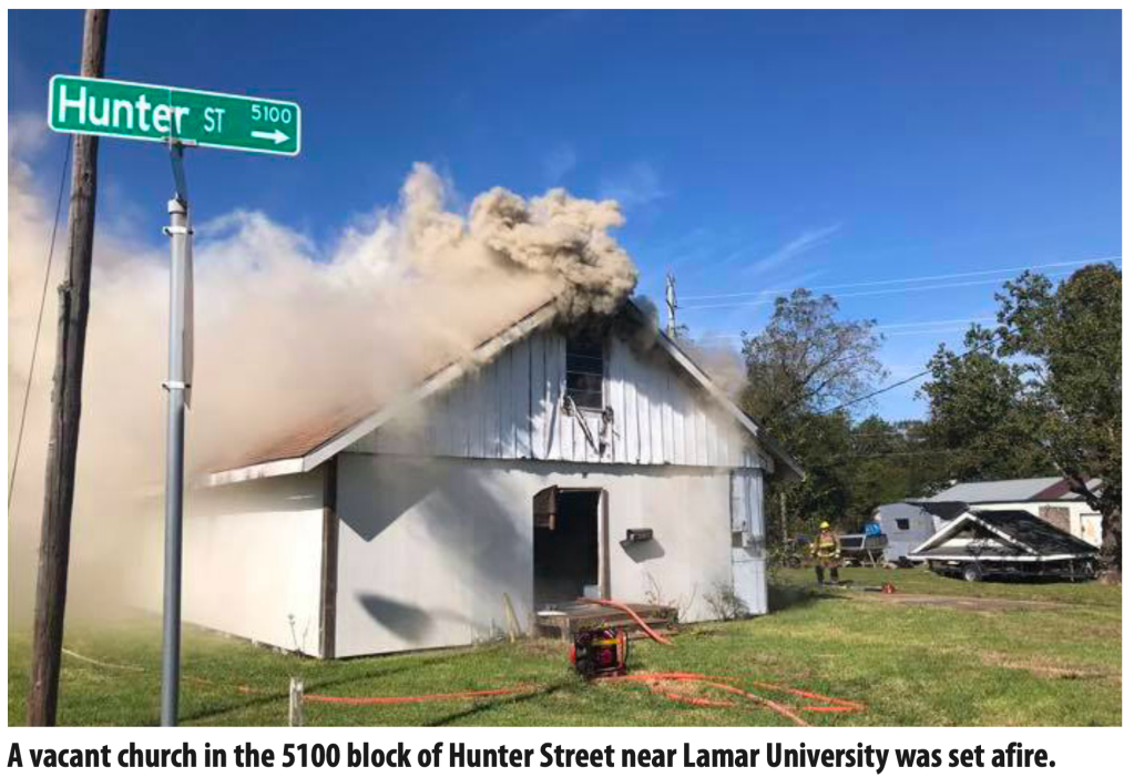 911 dispatchers received a call about a smoking building in the 5100 block of Hunter Street near Lamar University, Beaumont Fire-Rescue Capt. Jimmy Blanchard said in a news release posted to the department’s Facebook page.