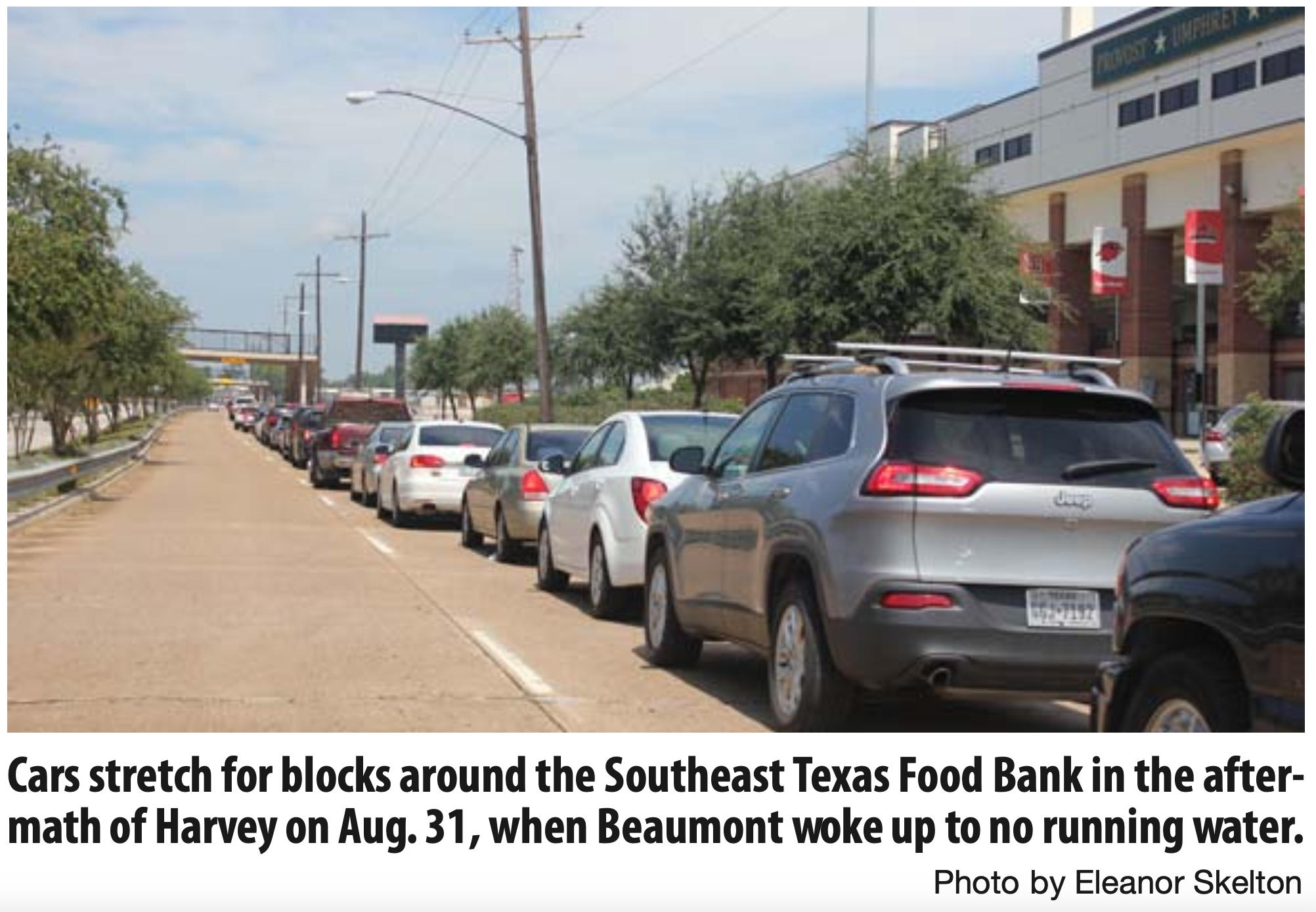 When the floodwaters receded from the roads, he said the Southeast Texas Food Bank set up 34 mobile pantries throughout the community during September, much more than the usual six or seven per month.