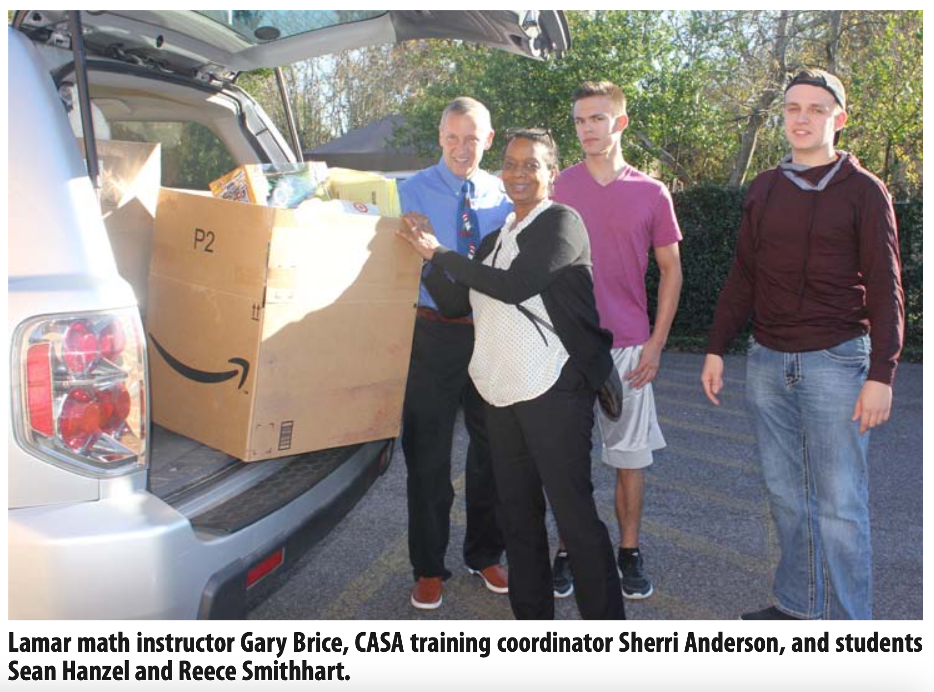 Lamar math instructor Gary Brice, CASA training coordinator Sherri Anderson, and students
