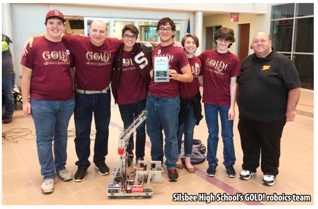 Silsbee High School’s GOLD! robotics team is led by team captains John Eason and Jaiden Johnson, and coached by Vic Miller, who is currently in his 20th year of coaching competitive engineering teams. Other team members include Leila Windham, Nick Allen, Josh Flowers, Kyler Macon, and Deacon Swope.