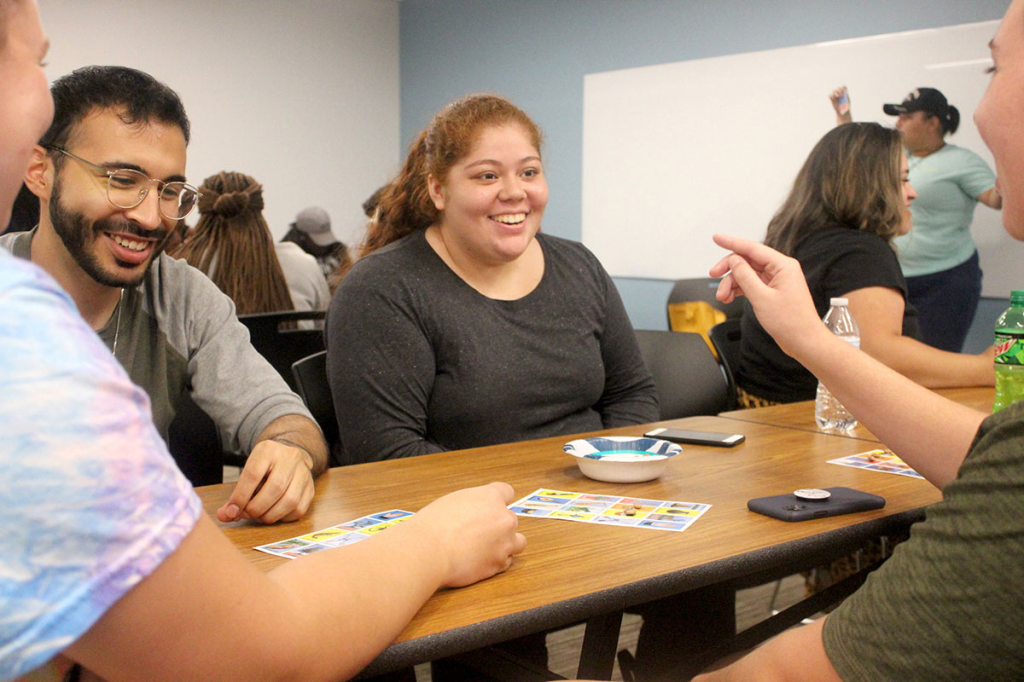 The game is similar to bingo, but participants put uncooked pinto beans to mark a grid. Miguel Chavez, Lamar history professor, and students Cesar Delgado and Melissa Torres, organized the event as part of LU’s Hispanic Heritage Month.