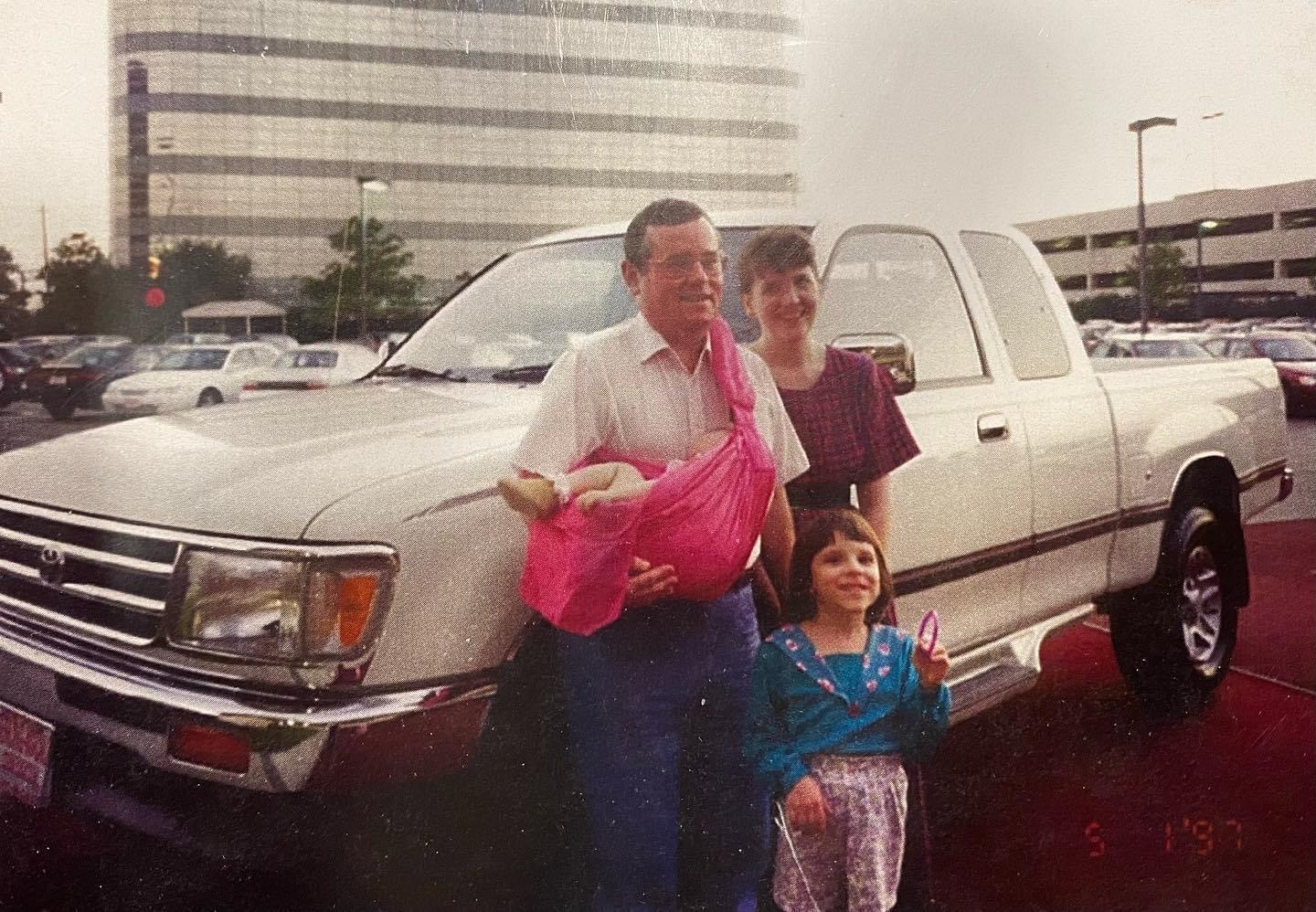 The first picture is from May 1, 1997. I’m with my parents and my baby sister outside Sterling McCall Toyota in Houston. My dad finally decided what kind of truck he wanted to buy, as part of his plan to retire early and move to Western Colorado. The dealership gave him a calendar with this picture and the caption “Tom’s Toy.”