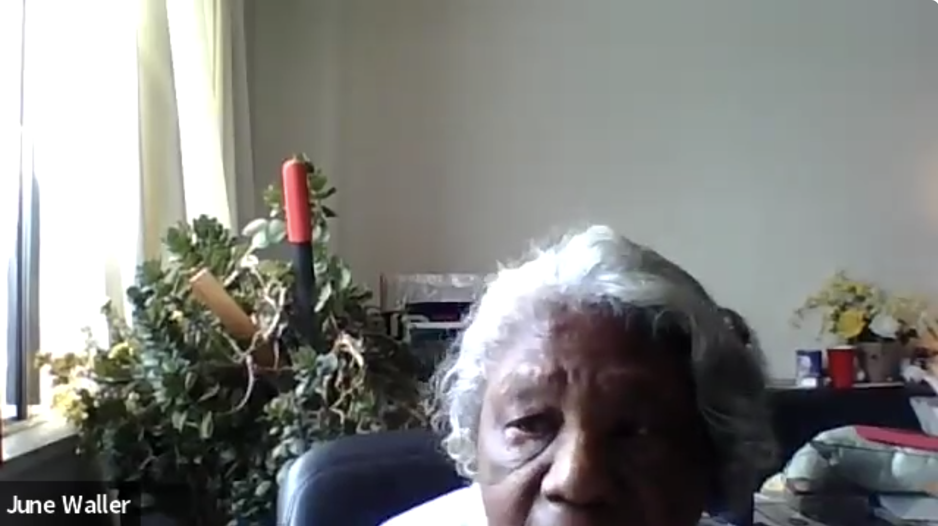 Affordable housing and transportation activist June Waller, who has been advocating for 60 years, addressed those attending the Zoom meeting. She said she was glad to see the crowd gathering even in an online space.